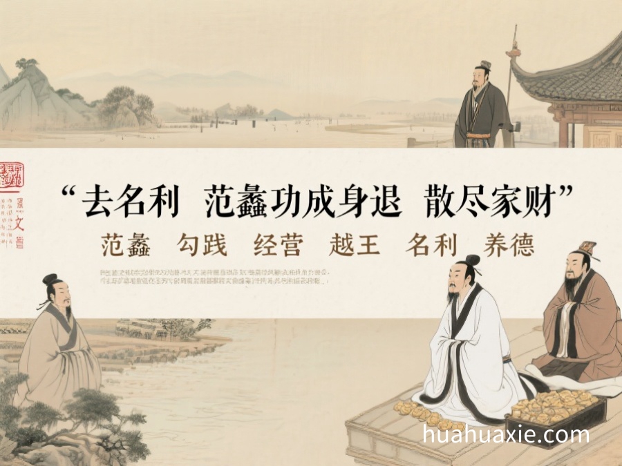 春秋时期,楚国人范蠡和文种辅佐越王勾践二十年,帮助越王灭吴复国,成就了霸业。后来范蠡官拜上将军,名扬天下。范蠡认为盛名之下,难以长久,况且勾践的为人,可与之同患难,难与之同安乐,写信辞别了勾践。